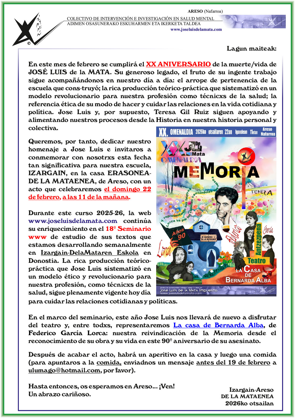 El trabajo que proponemos para este mes de FEBRERO es el artículo de JOSE LUIS DE LA MATA: