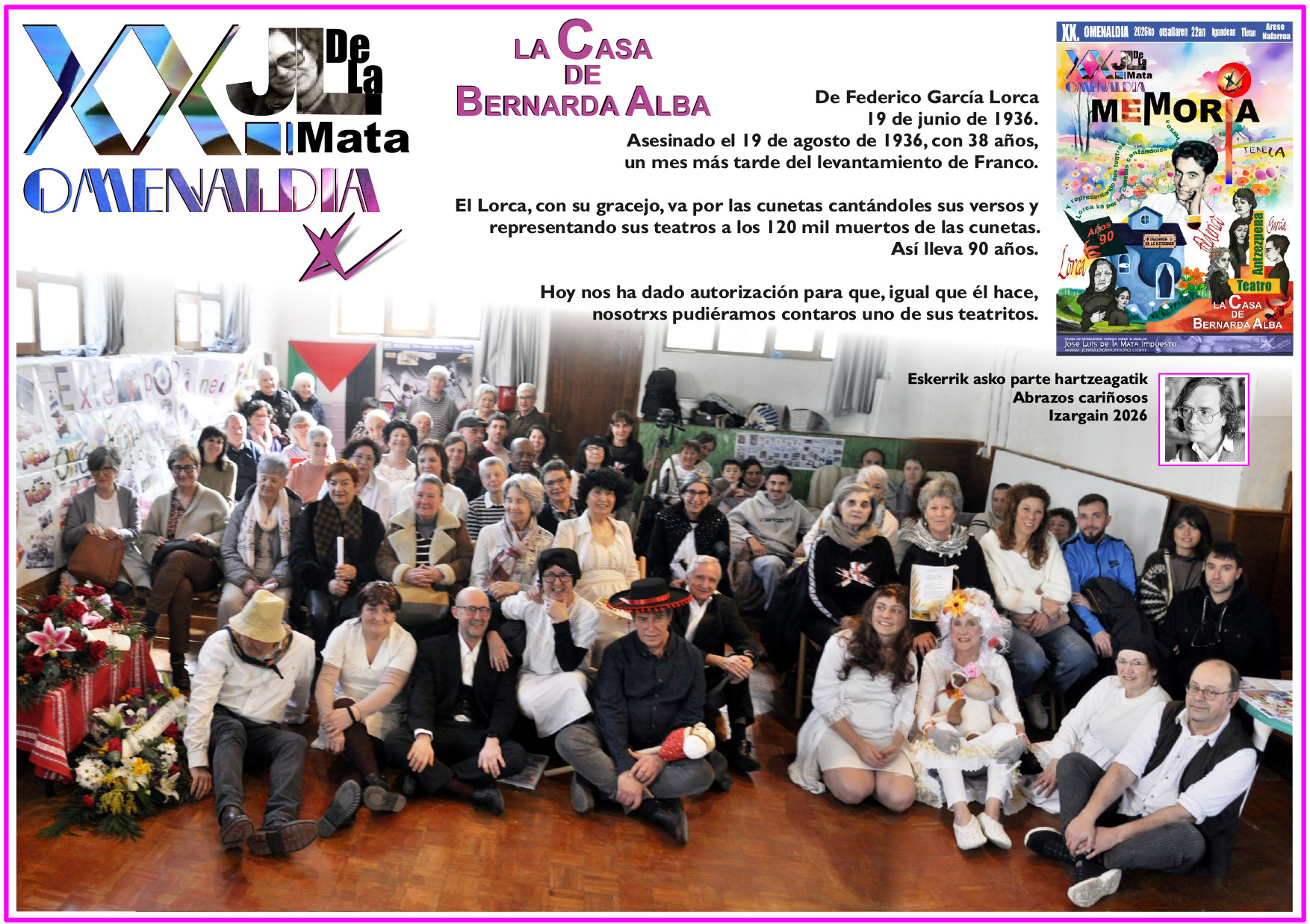 23 un año más, 20 años. Gratitud fundante, la grandeza de Lorca lo acoge en su Bernarda Alba. El estrellato de su representación sobresaliente en Bernarda, Josefa, la Poncia, Angustias y cómo no Adela, nos acunan en las mieses de los segadores.